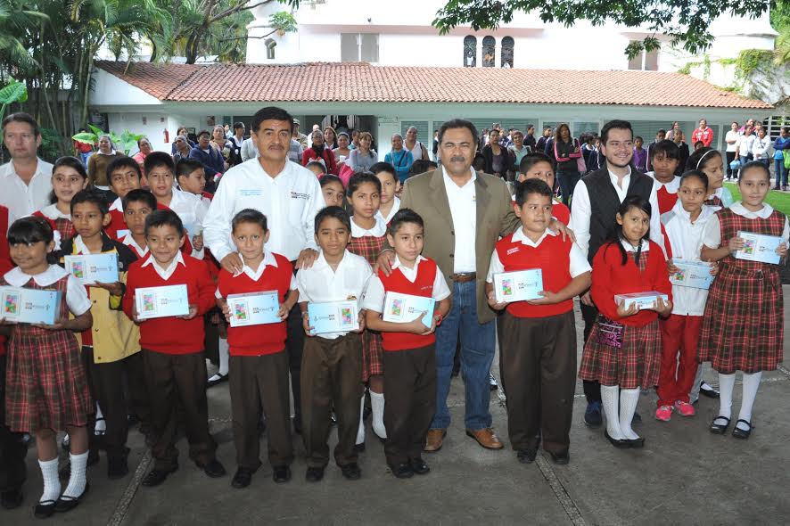 Cuernavaca, Morelos; 7 de julio de 2015. Este martes el presidente de Cuernavaca, Jorge Morales Barud, encabezó la jornada de entrega masiva de tabletas electrónicas a estudiantes de quinto grado de las 106 escuelas primarias del municipio.