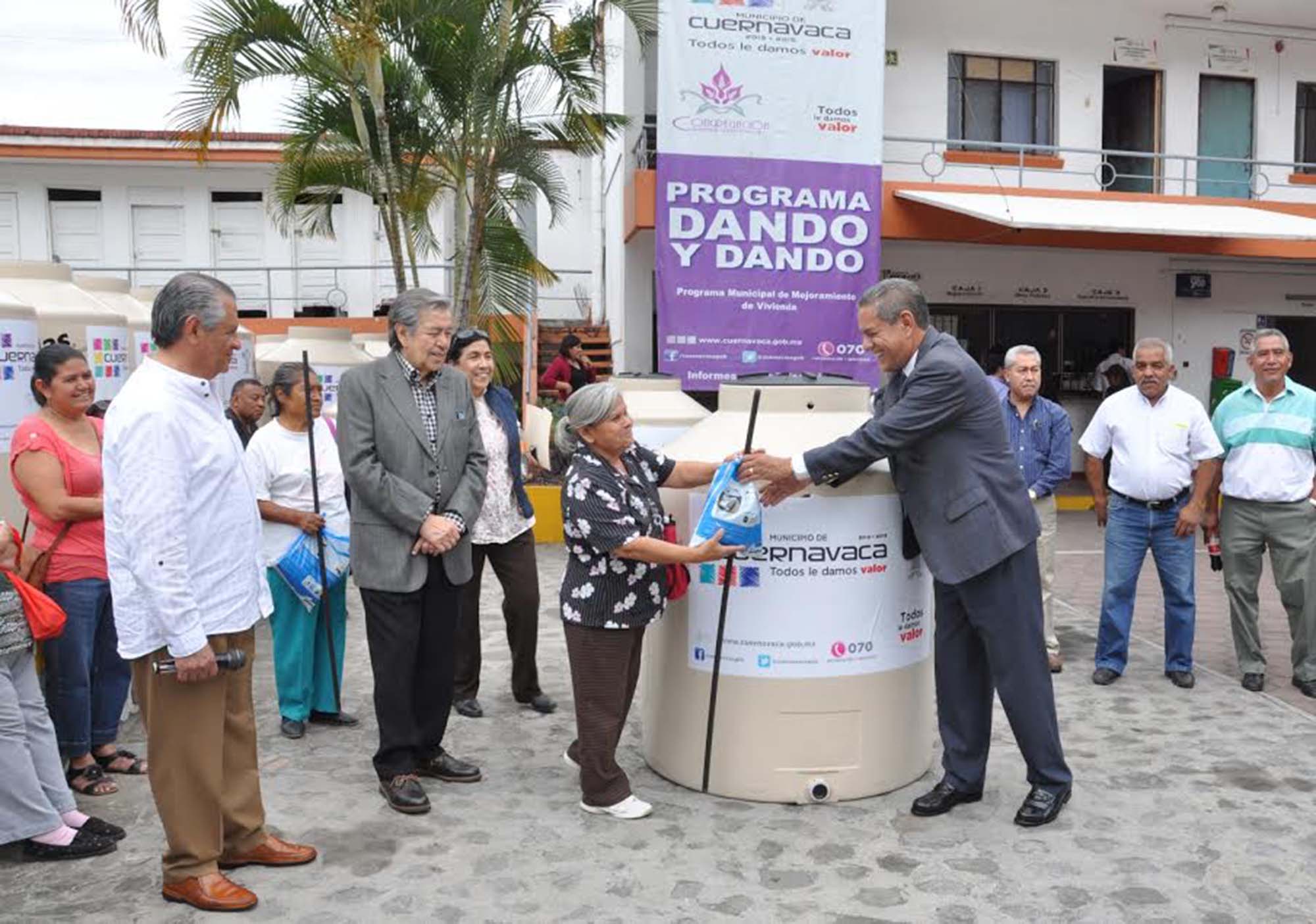 Cuernavaca, Morelos; 19 de febrero de 2015. Resultado de la colaboración del H. Ayuntamiento de Cuernavaca con la Congregación Mariana Trinitaria A.C., más de 590 familias en estado de vulnerabilidad de diversas colonias del municipio elevaron su calidad de vida al mejorar su vivienda con la instalación de tinacos a través del programa “Dando y Dando”.