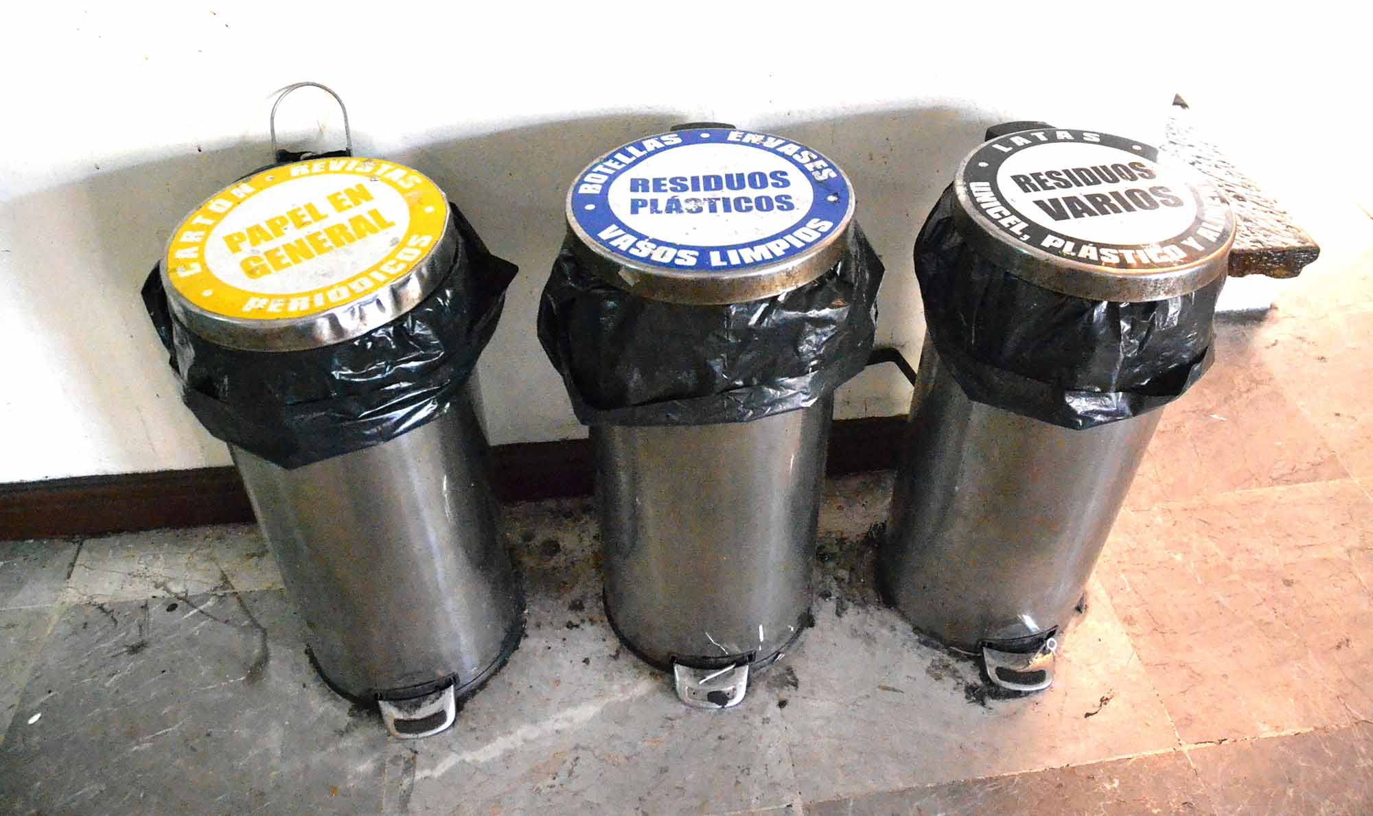 En una exploración realizada por Conurbados a las oficinas del Gobierno del Estado y a las de algunos ayuntamientos, se pudo constatar las afirmaciones del empresario Miguel Ángel Aguilar: hay botes de basura con rótulos que indican que se trata de residuos “Reciclables y no “Reciclables”; o “Papel en general”, “Residuos sólidos” y “Residuos varios”, en todos hay bolsas negras gruesas para basura.
