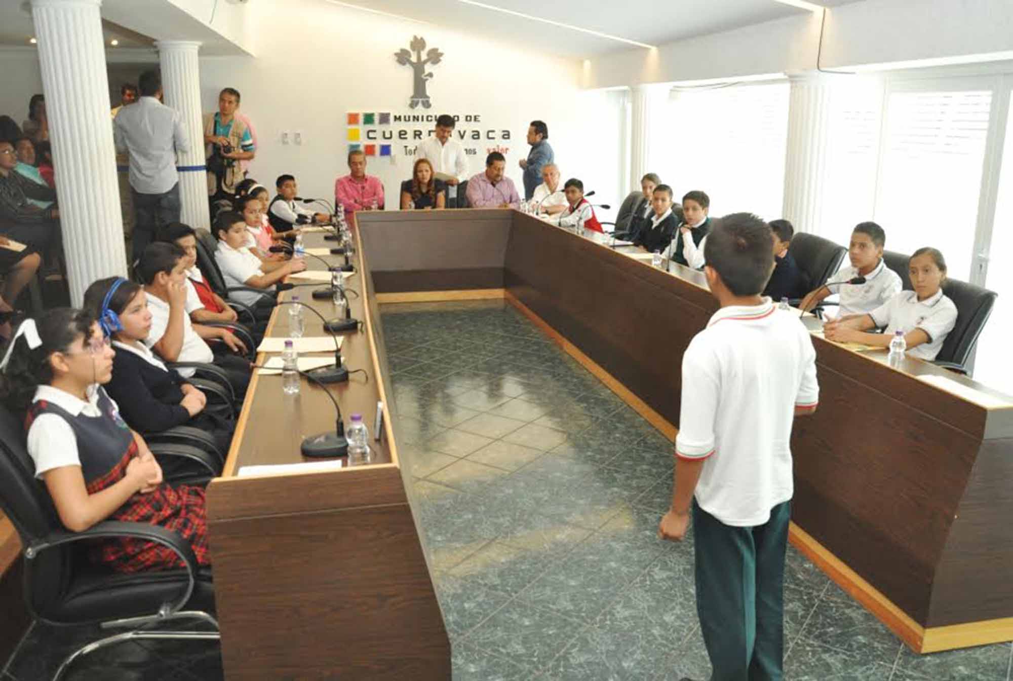 Cuernavaca, Morelos; 20d e abrild e 2015. El Ayuntamiento de Cuernavaca determinó tras un proceso de selección en el salón de Cabildos “José María Morelos y Pavón”, a la niña y al niño que concursarán para representar al municipio capital en el Parlamento Infantil 2015 que se desarrollará el próximo 30 de abril en el Congreso del Estado.