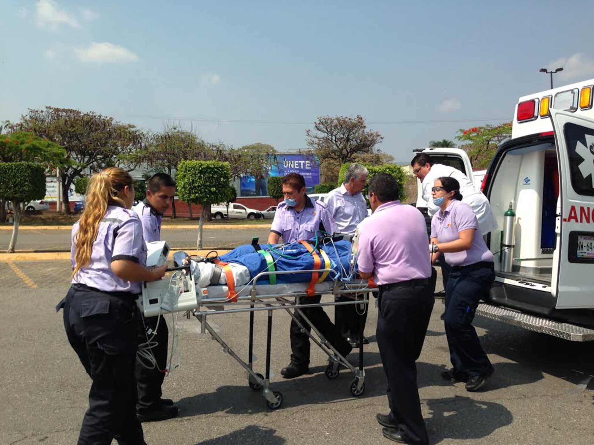 Cerca de las cuatro de la tarde arribó el helicóptero de la Comisión Estatal de Seguridad al estacionamiento de la tienda de autoservicio SAM’S ubicada en avenida Vicente Guerrero. Posteriormente llegó la ambulancia proveniente del Hospital General José G. Parres para colocar al paciente en la aeronave que finalmente lo trasladó hasta la Ciudad de México.
