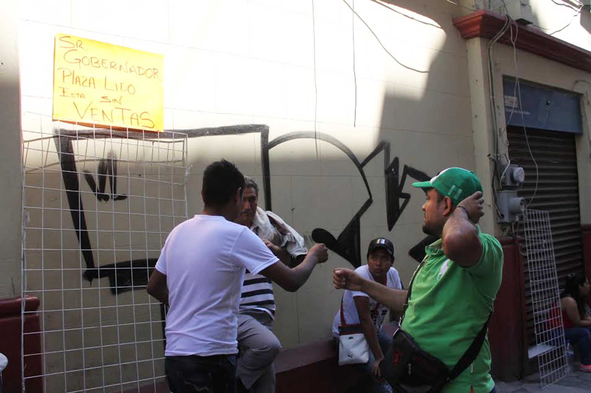 Con pancartas que decían: “señor gobernador la necesidad nos obliga estar aquí”, decenas de comerciantes de Plaza Lido amagaron con salir a vender al pasaje Tepetates o a Plaza de Armas ante la caída de ventas de un 80 por ciento y del cierre de negocios en un 60 por ciento.