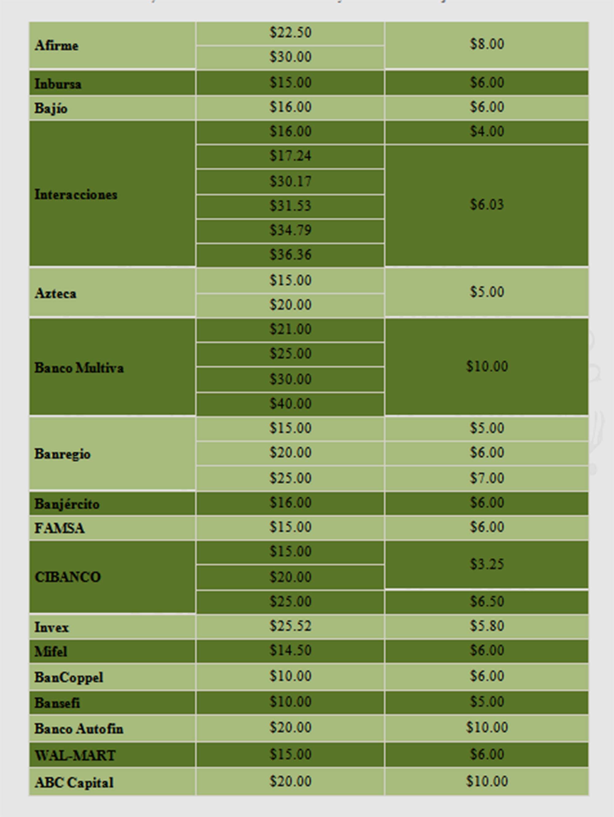 En el caso de las tarjetas de débito, el monto mínimo por retiro de efectivo en un cajero automático distinto al emisor de tu tarjeta lo tiene Bansi, el cual aplica una comisión de 8.62 pesos más IVA; en tanto el monto máximo es para Multiva con un costo de 40 pesos más IVA por dicha operación.