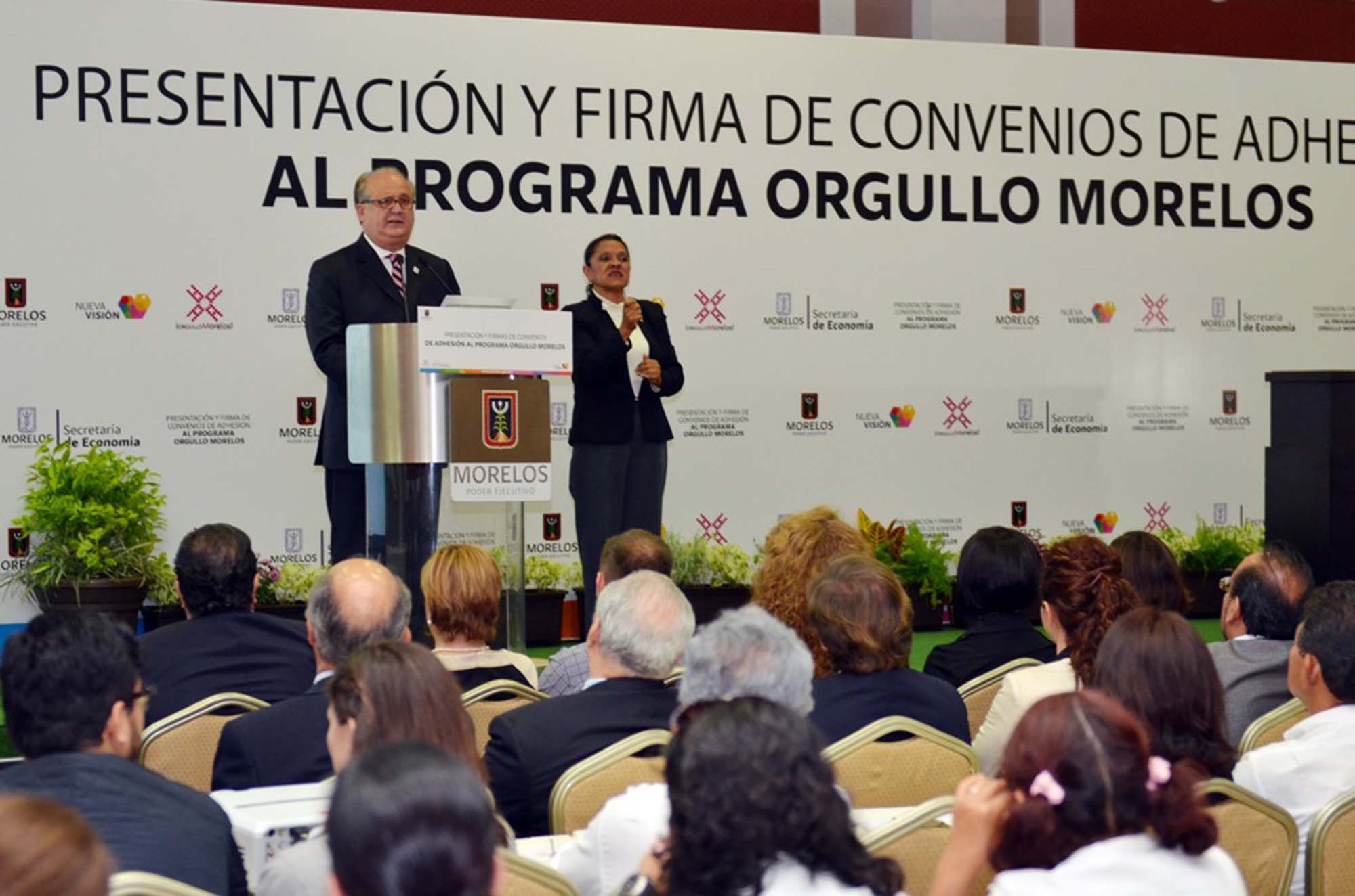 En presencia de empresarios, presidentes de cámaras, productores y la delegada de la Secretaría de Economía federal, Gilda Trujillo González, entre otros invitados, el Jefe del Ejecutivo estatal firmó los convenios de adhesión para utilizar el sello “Orgullo Morelos”, con empresas, entre las que destacan “Continental Temic”; “Malta Cleyton”; “Químicos y Solventes de Morelos”; “Comercial Puente de Ixtla”; “Operadora de Ropa Deportiva Cusma”; Restaurante y Hotel las Mañanitas”; Cementos Moctezuma” y “Nissan Mexicana”, entre otros.