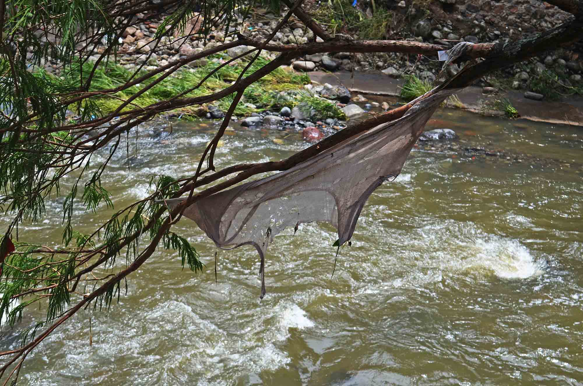 Ropa en las ramas y río