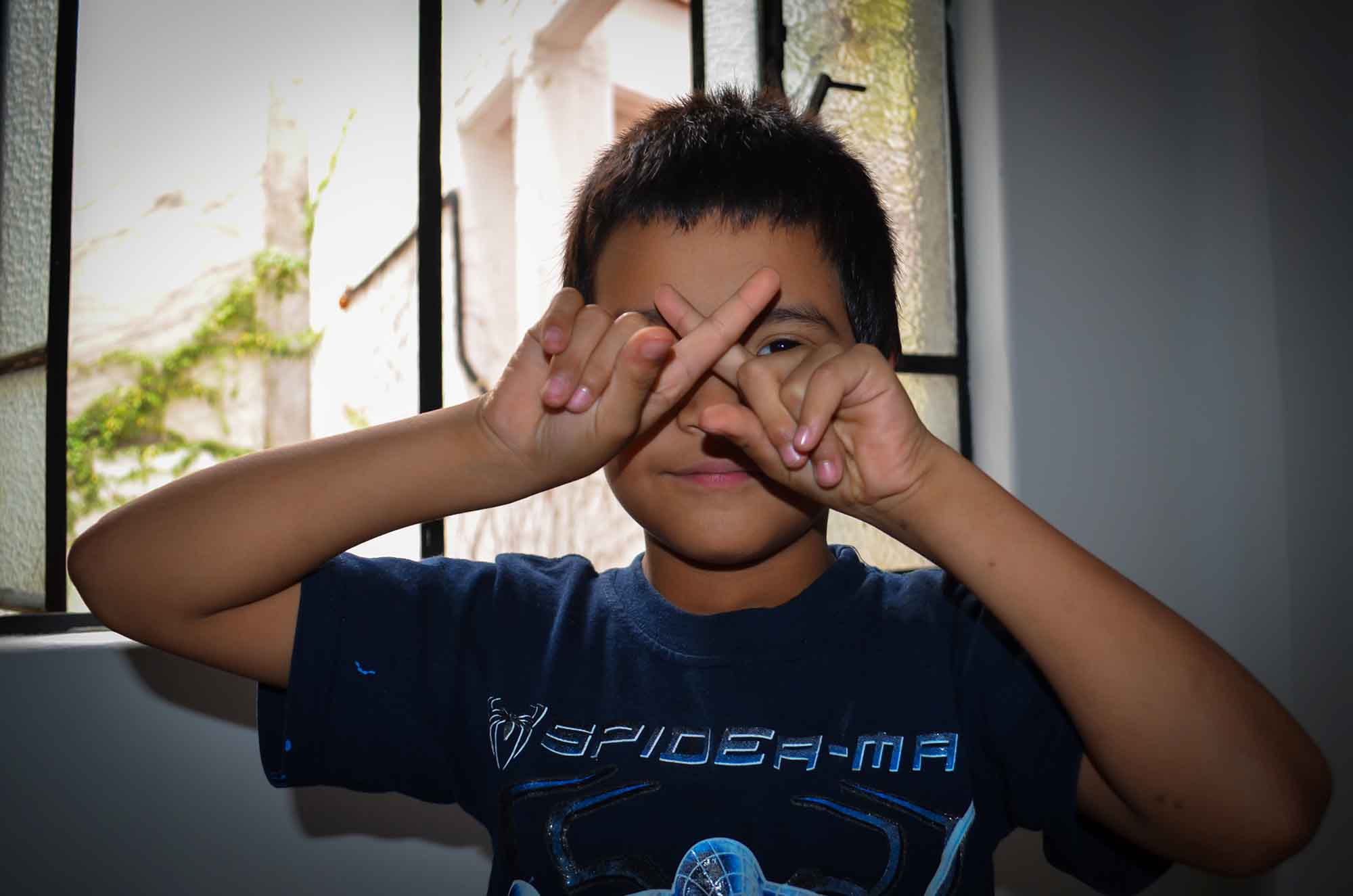 La estampa de la playera del pequeño es de Spiderman.
