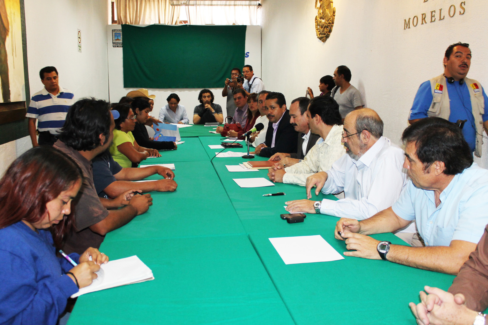 Cuernavaca, Morelos; 5 de noviembre de 2012. La reunión entre representantes de Huexca y el gobierno del estado programada para este día a las 10, en el salón de Comisiones del Congreso Estatal, fue suspendida después de tres horas por ambas parte para revisar sendas propuestas.