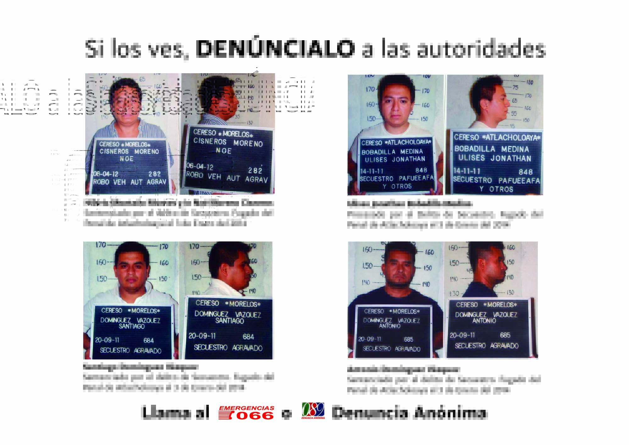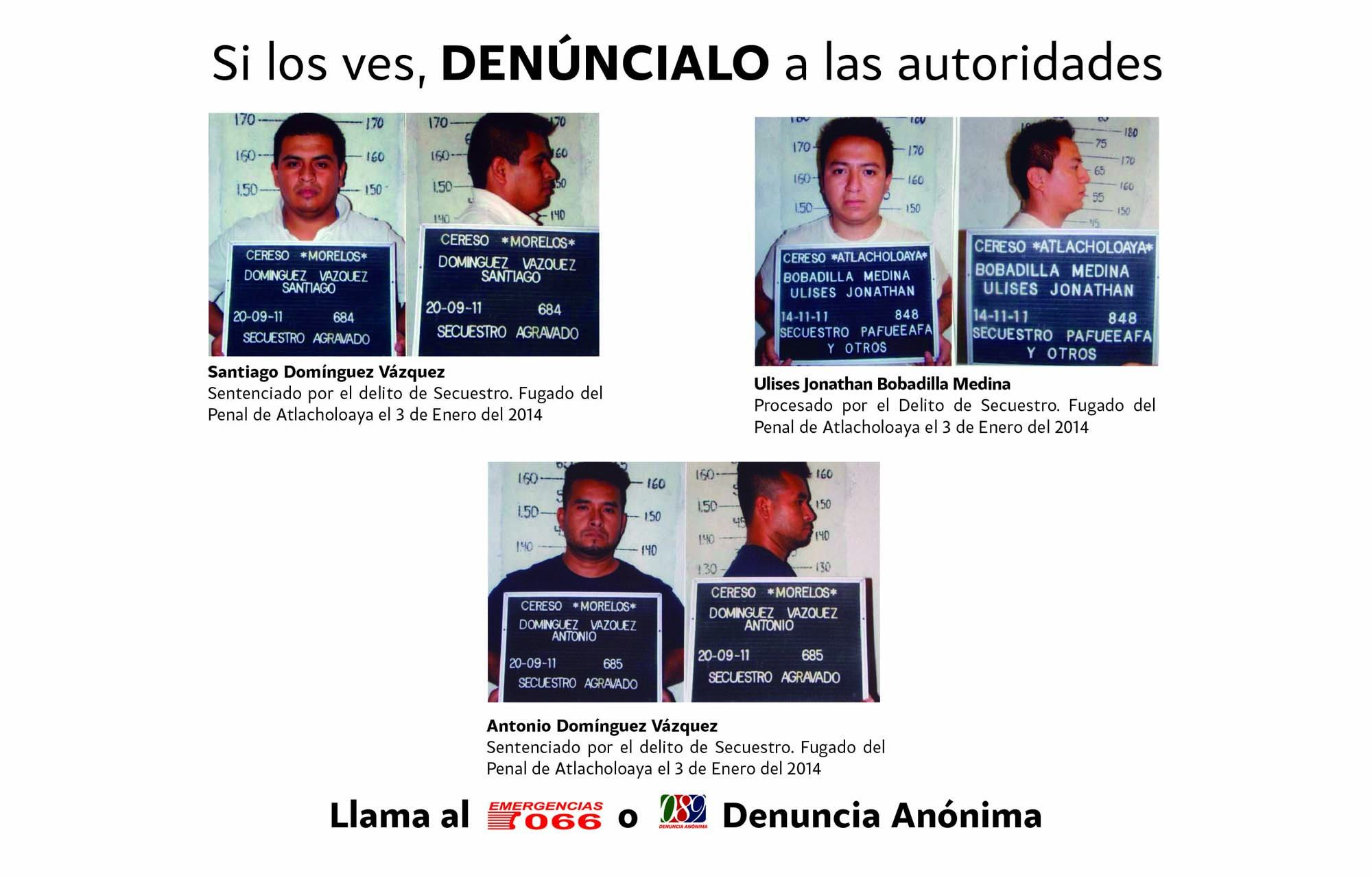 “Cabe referir que aunado a estos despliegues, se implementan dispositivos de seguridad en los límites con los estados de Guerrero, Estado de México, Puebla y Distrito Federal para evitar su salida de Morelos y lograr su detención”, concluye el comunicado fechado el día de hoy.