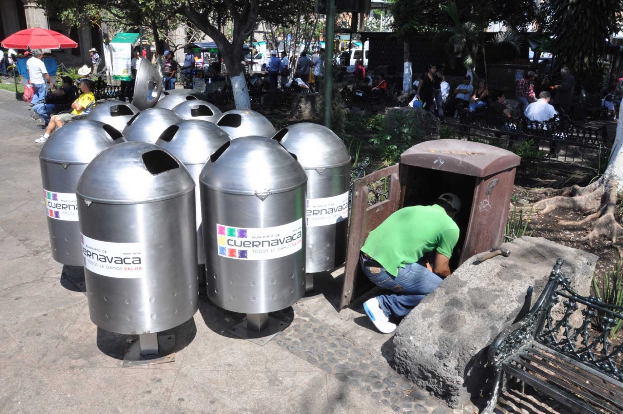 En una primera etapa se ubicaron en la Plaza Emiliano Zapata y Jardín Juárez, y sustituirán a los anteriores que se encontraban en mal estado. Los nuevos depósitos son de aproximadamente un metro cúbico y fueron autorizados por el Instituto Nacional de Antropología e Historia (INAH).
