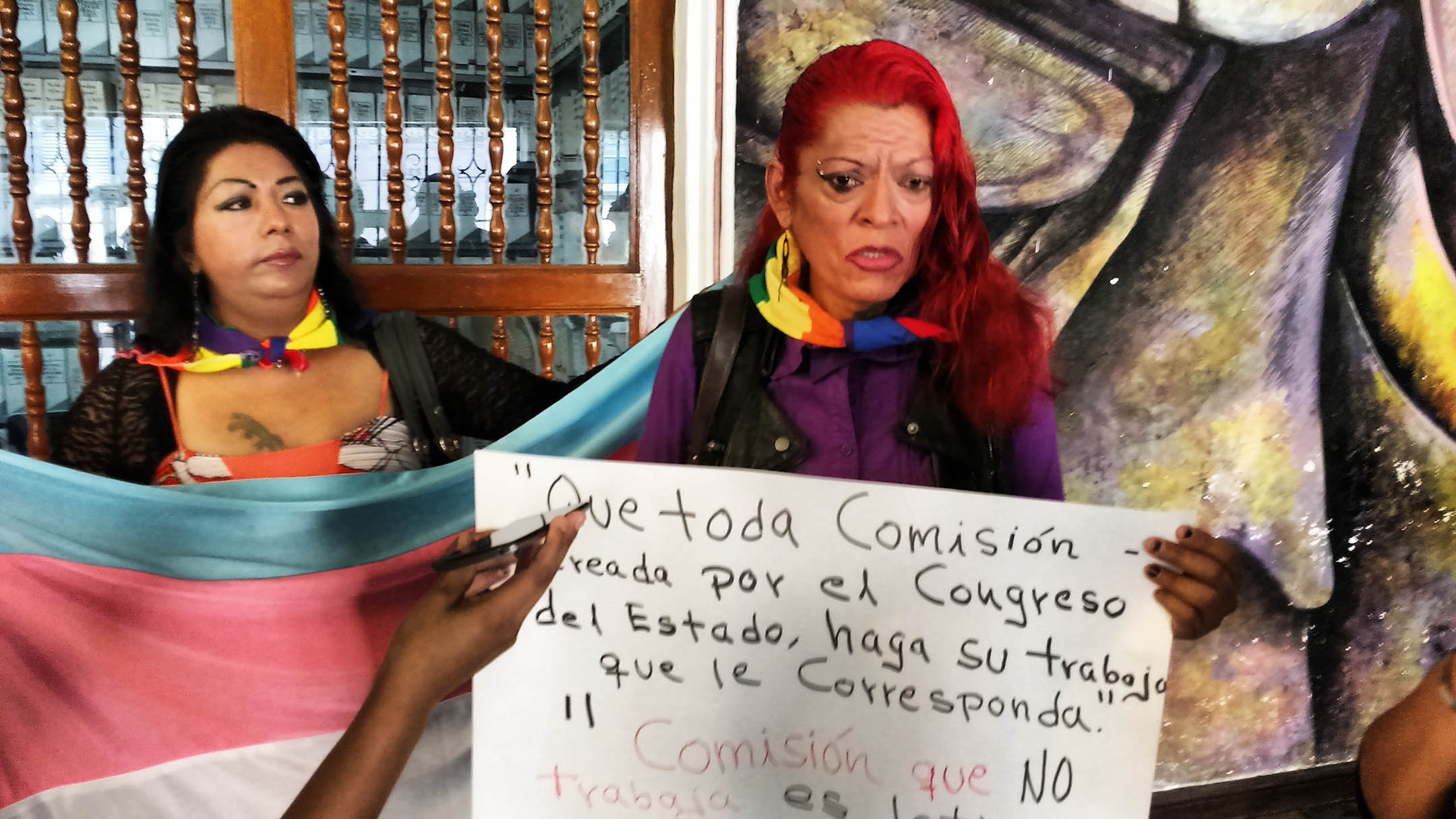 Jessica Gama Hernández, vocera del Movimiento Transgénero A.C, dijo: “Estamos protestando, porque ya se va esta legislatura y hemos visto muy poco avance en temas de la diversidad sexual; no podemos permitir que este Congreso se vaya sin la aprobación de esta iniciativa (de identidad sexo genérica) que desde el 9 de octubre del 2014 está guardada y rezagada, queremos que esta comisión la saque de donde está”.