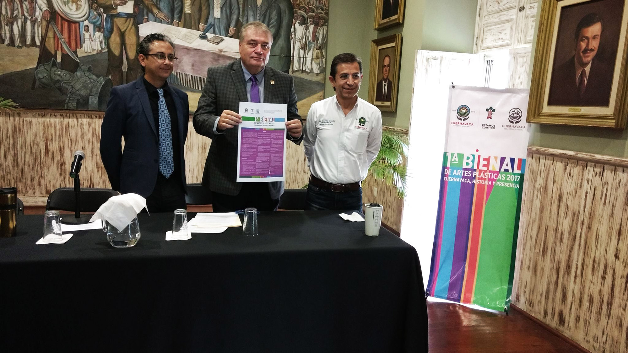 En conferencia de prensa, el secretario del Ayuntamiento José Manuel Sanz, el secretario de Desarrollo Social y el Director General del Instituto de Cultura, Hugo Juárez presentaron la Convocatoria , cuyo objetivo es, señaló Hugo Juárez, “presentar y representar a Cuernavaca bajo la óptica de propuestas actuales y vanguardistas que destaquen los valores y que resignifiquen artísticamente su esencia y características”.