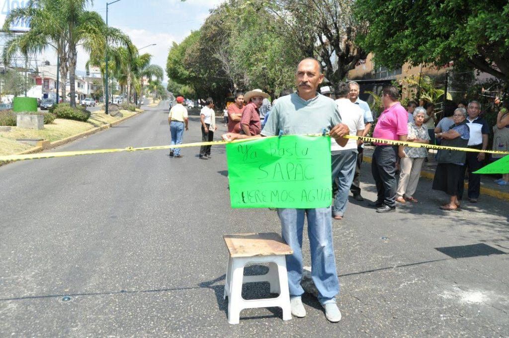 Cuernavaca, Morelos; 7 de marzo de 2017. Tras quince días de no contar con el suministro de agua potable un grupo de vecinos de varias colonias bloqueó la Avenida Poder Legislativo esquina con Juan N. Álvarez para exigir al Sistema d Agua Potable y Alcantarillado de Cuernavaca (SACPAC) le regularización en el suministro del vital líquido.