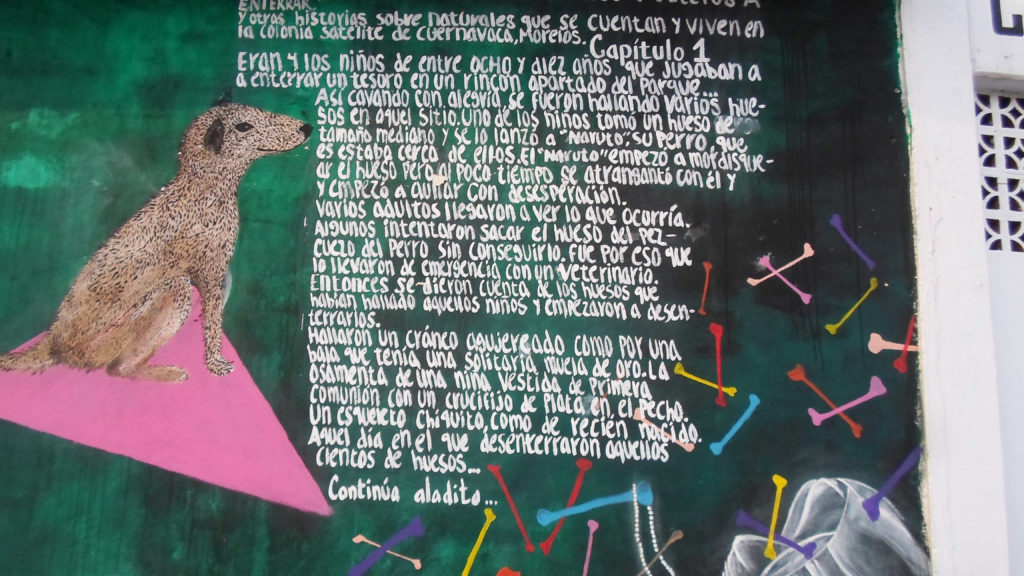 Con la ayuda del escritor y cuentacuentos Emilio Lome, los vecinos de la colonia Satélite construyeron La Ciudad Cuento, en ella sus habitantes narran las historias que escucharon o se las contaron los protagonistas de la anécdota, una de estas leyendas es: “El cráneo de los dientes de oro”: