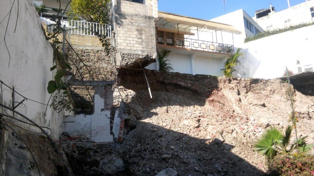 Cuernavaca, Morelos; 30 de enero de 2017. Los trabajos de una obra provocaron que el jardín y la terraza de otra vivienda colapsaran en Cuernavaca.