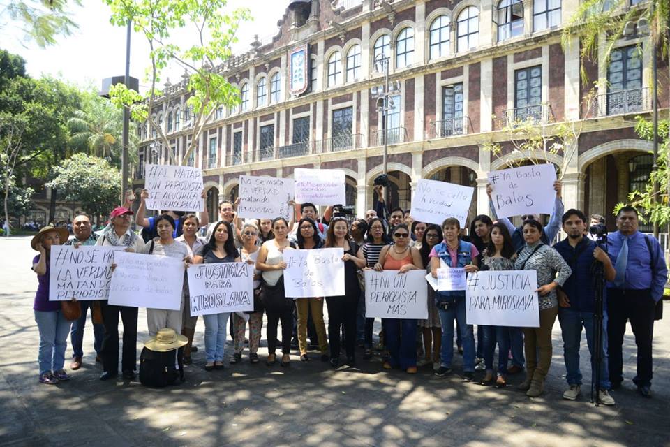 Con pancartas y al grito de “Justicia para Miroslava”, “No más periodistas asesinados”, los reporteros protestaron en la Plaza de Armas en Cuernavaca, para exigir un freno a la ola de violencia y al asesinato de periodistas, porque la democracia en este país está en juego.