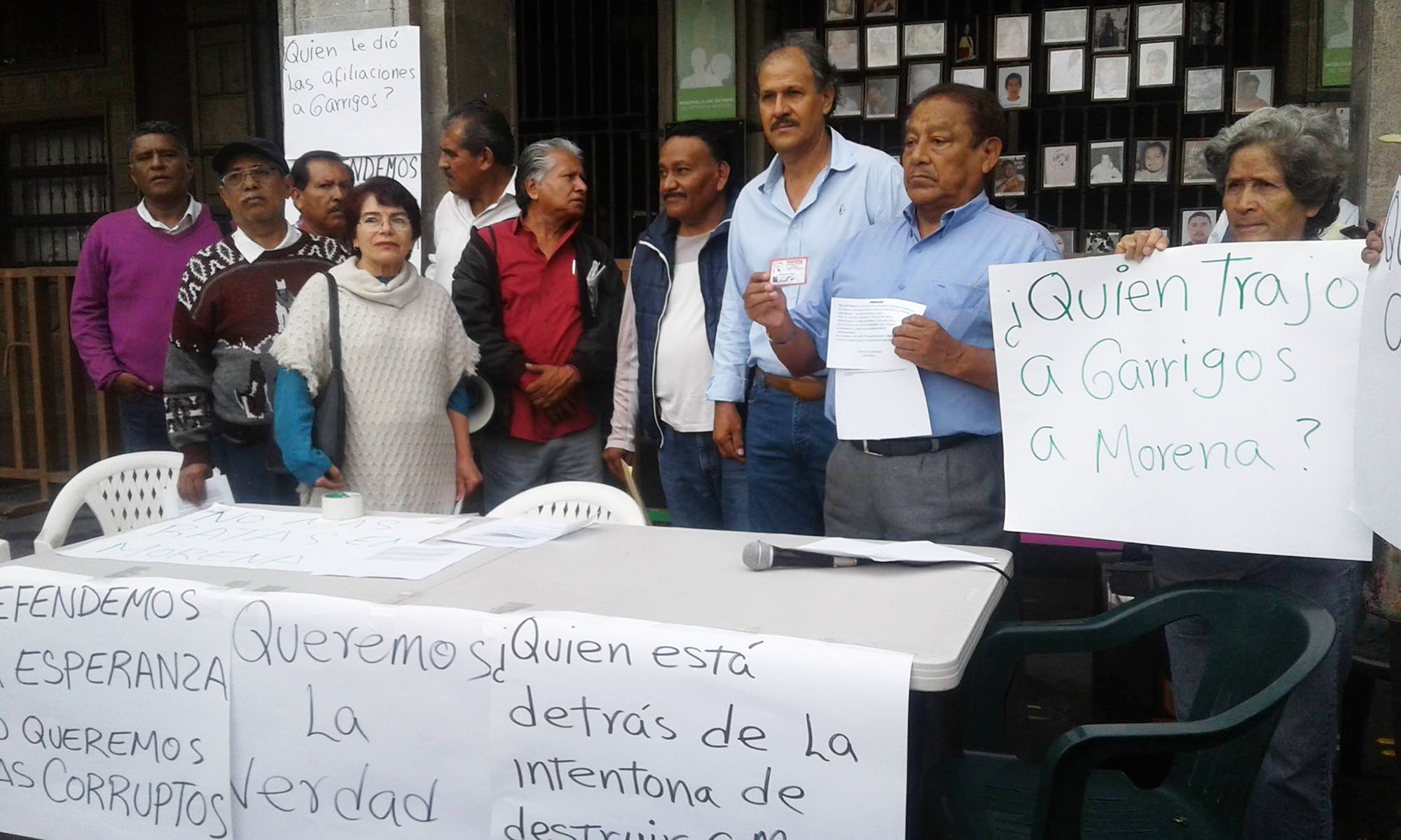 Cuernavaca, Morelos; 16 de agosto de 2017. Integrantes de la Asociación Cívica Morelense Gustavo Salgado y simpatizantes del Partido Movimiento de Regeneración Nacional (Morena), exigieron que se esclarezca quien invitó a Manuel Martínez Garrigós a sumarse a Morena y se le sancione, porque es claro que quieren desestabilizar al partido.