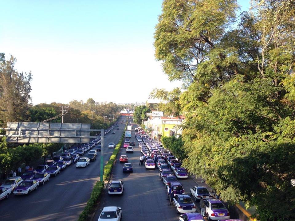 Desde las ocho horas de este jueves, cientos de unidades de taxis se congregaron en la Paloma de la Paz y de ahí se desviaron en caravana a la Secretaría de Movilidad y Transporte, y ya no arribaron a Palacio de Gobierno como tenían previsto.