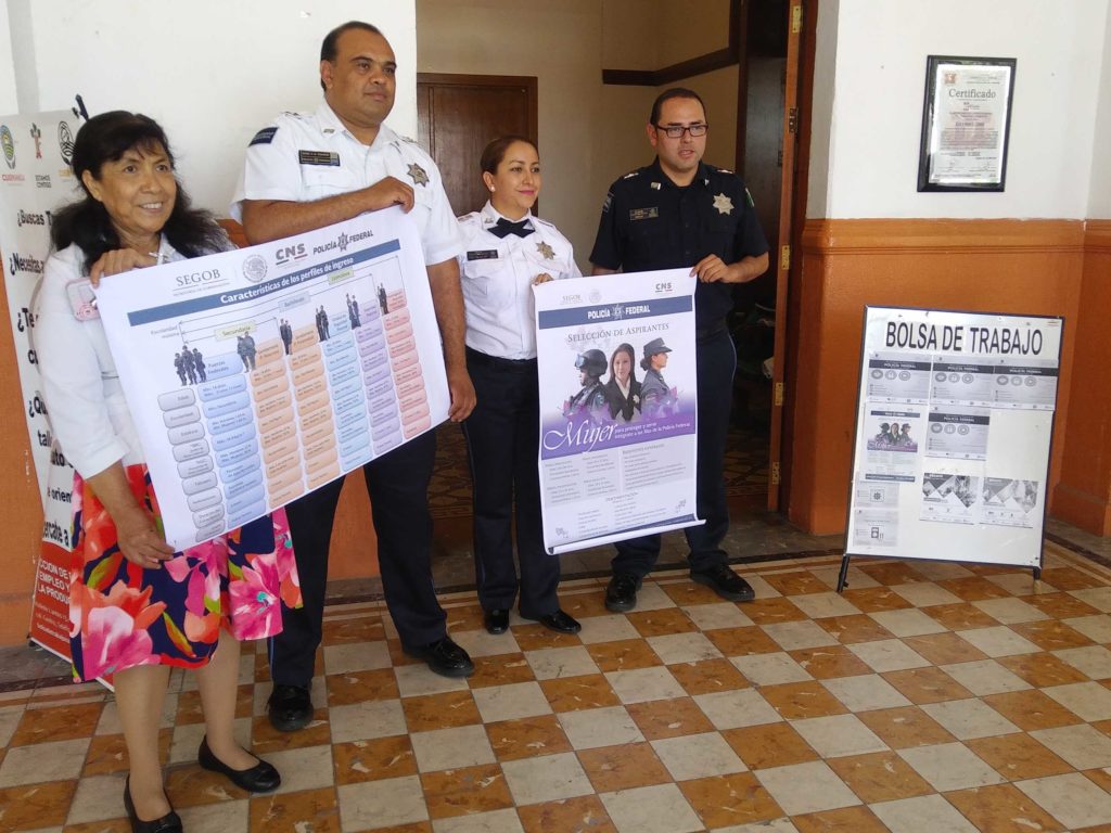 Cuernavaca, Morelos; 18 de julio de 2017. Elementos de la Policía Federal visitaron el Ayuntamiento de Cuernavaca para conminar a hombres y mujeres interesada en participar en la jornada de reclutamiento que se realizará el próximo viernes 28 de julio en la Coordinación Estatal de la Policía Federal.