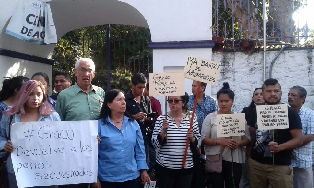 Con pancartas donde se leían textos como “Graco el mata perros de Morelos” decenas de animalistas se dieron cita esta mañana en las instalaciones de la Propaem, para exigir al gobierno del estado devuelva los 158 animales que se llevó, porque desconocen su paradero.
