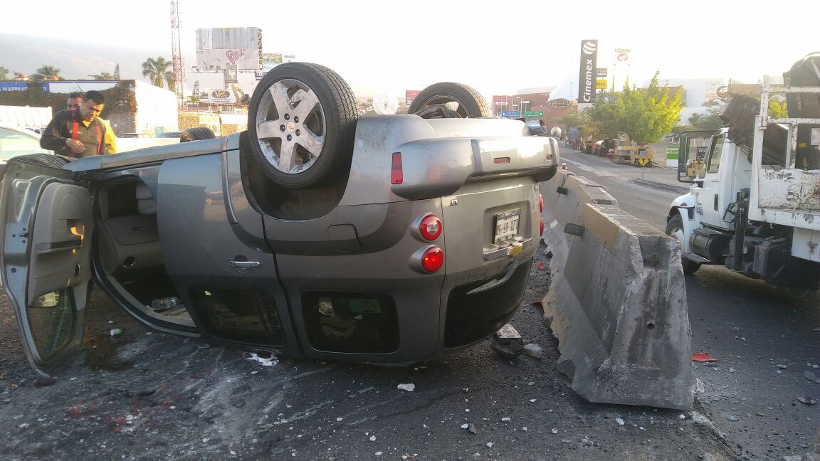 Cuernavaca, Morelos; 28 de diciembre de 2016. Una mujer de entre los 35 y 40 años de edad resultó lesionada la mañana de este miércoles en las inmediaciones del Paso Express, luego de que se volcara el vehículo en el que viajaba.