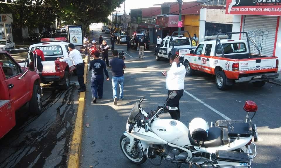 Cuernavaca, Morelos; 29 de marzo de 2016. La mañana de este martes, personal del Heroico Cuerpo de Bomberos y de Protección Civil de Cuernavaca se movilizaron luego de que en avenida Vicente Guerrero se registró una explosión en una antojería.