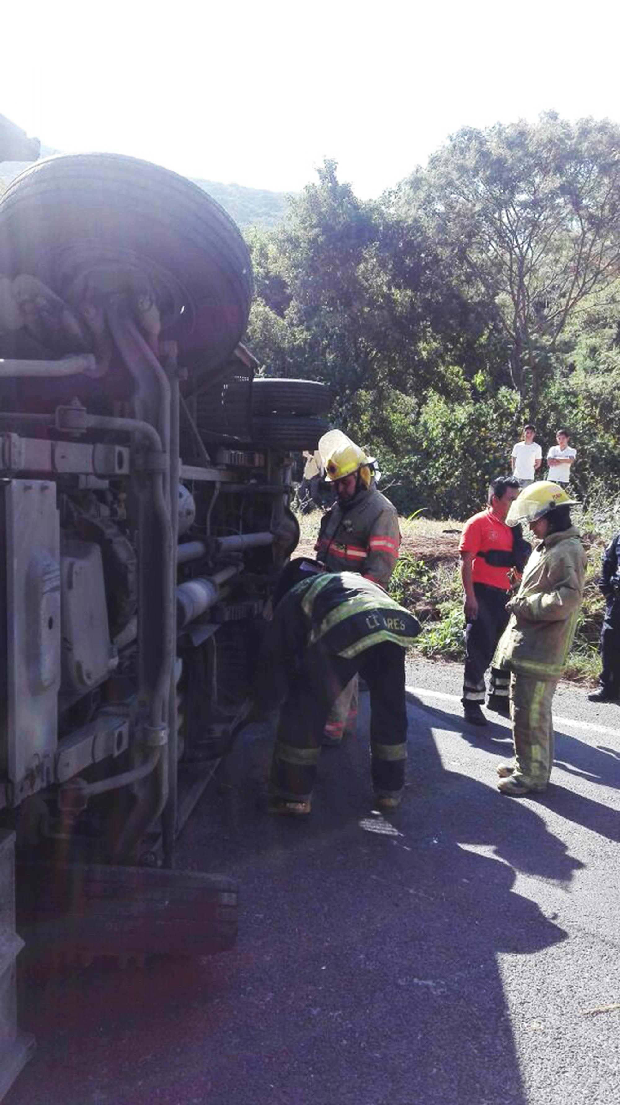 Vuelca camión de pasajeros en Cañón de Lobos