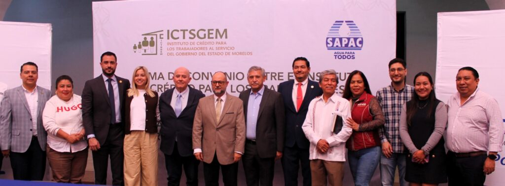 Con el respaldo del Gobierno estatal, el Instituto de Crédito para los Trabajadores al Servicio del Gobierno del Estado (ICTSGEM) y el Sistema de Agua Potable y Alcantarillado de Cuernavaca (SAPAC) firmaron un convenio de colaboración que permitirá reactivar el otorgamiento de préstamos a personal de base del organismo descentralizado.