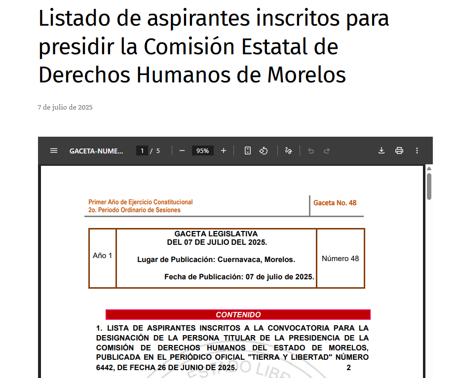 De acuerdo con el listado de personas aspirantes inscritas para presidir la Comisión Estatal de Derechos Humanos de Morelos (CDHM), lo más probable es que “el Congreso” elija a una mujer.