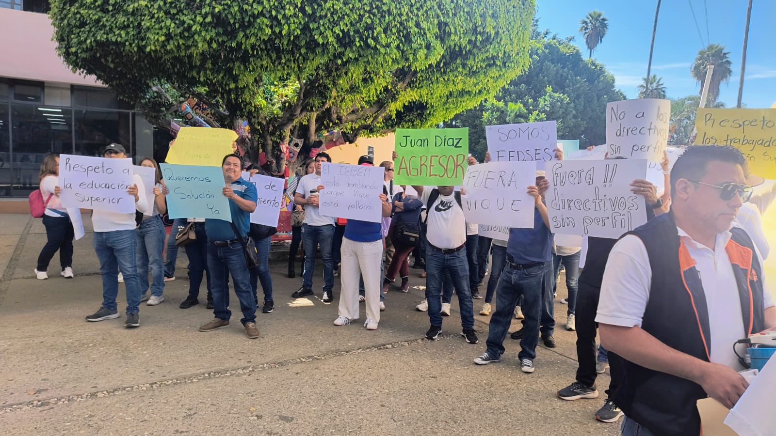 Cuernavaca, Morelos; 28 de agosto de 2025. Maestros de la Universidad Politécnica Nacional (UPN) protestaron en el Instituto de la Educación Básica del Estado de Morelos (IEBEM) y denunciaron que son víctima de hostigamiento, por parte del director de la institución educativa.