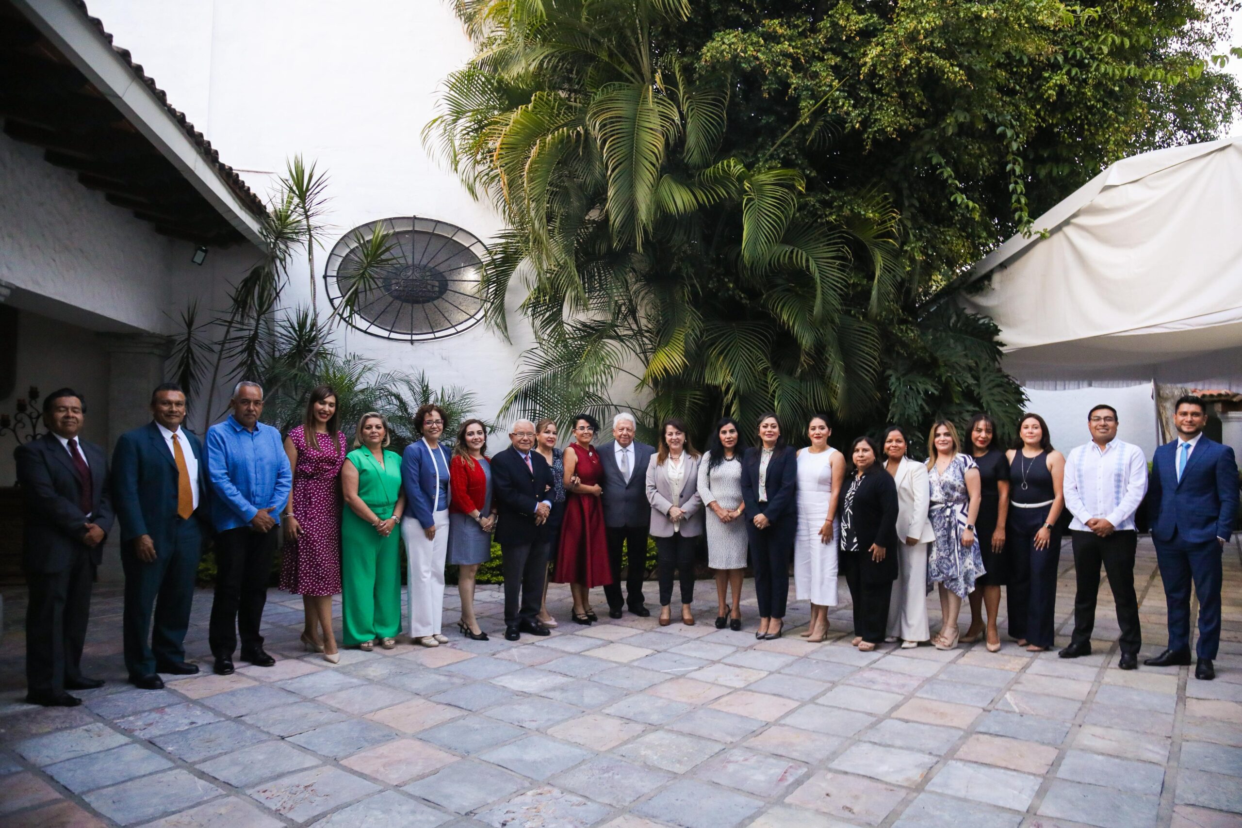 La gobernadora de Morelos, Margarita González Saravia, acompañada por el secretario de Gobierno, Juan Salgado Brito, y el magistrado presidente del Tribunal Superior de Justicia del estado, Juan Emilio Elizalde, sostuvo un encuentro con juezas, jueces y magistrados de distrito electos que entrarán en funciones este primero de septiembre.