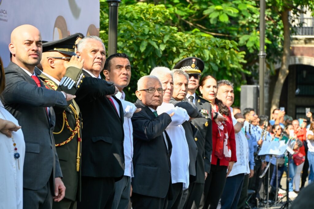 En representación de la gobernadora Margarita González Saravia, el secretario de Gobierno, Juan Salgado Brito, encabezó la ceremonia de izamiento de la Bandera Nacional en la Plaza General Emiliano Zapata Salazar, en Cuernavaca, en el marco de la conmemoración del 215 aniversario del inicio de la Independencia de México.