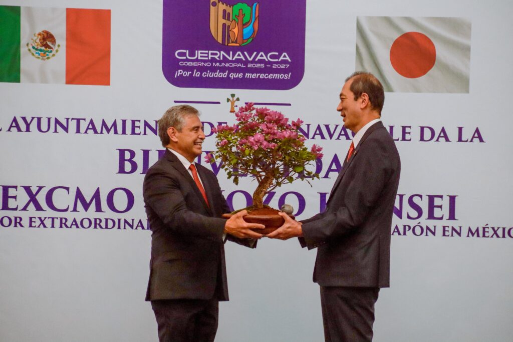 Cuernavaca, Morelos; 26 de septiembre de 2025.- En el marco de la relación fraterna que mantiene la capital morelense con las ciudades japonesas de Ōtaki y Minoh, este viernes el presidente municipal de Cuernavaca, José Luis Urióstegui Salgado, recibió al Excelentísimo Sr. Embajador de Japón en México, Kozo Honsei, en el Museo de la Ciudad de Cuernavaca (MuCiC), sede de la exposición de arte floral japonés Ikebana, organizada por el Ayuntamiento capitalino en coordinación con Ikebana Morelos- México.