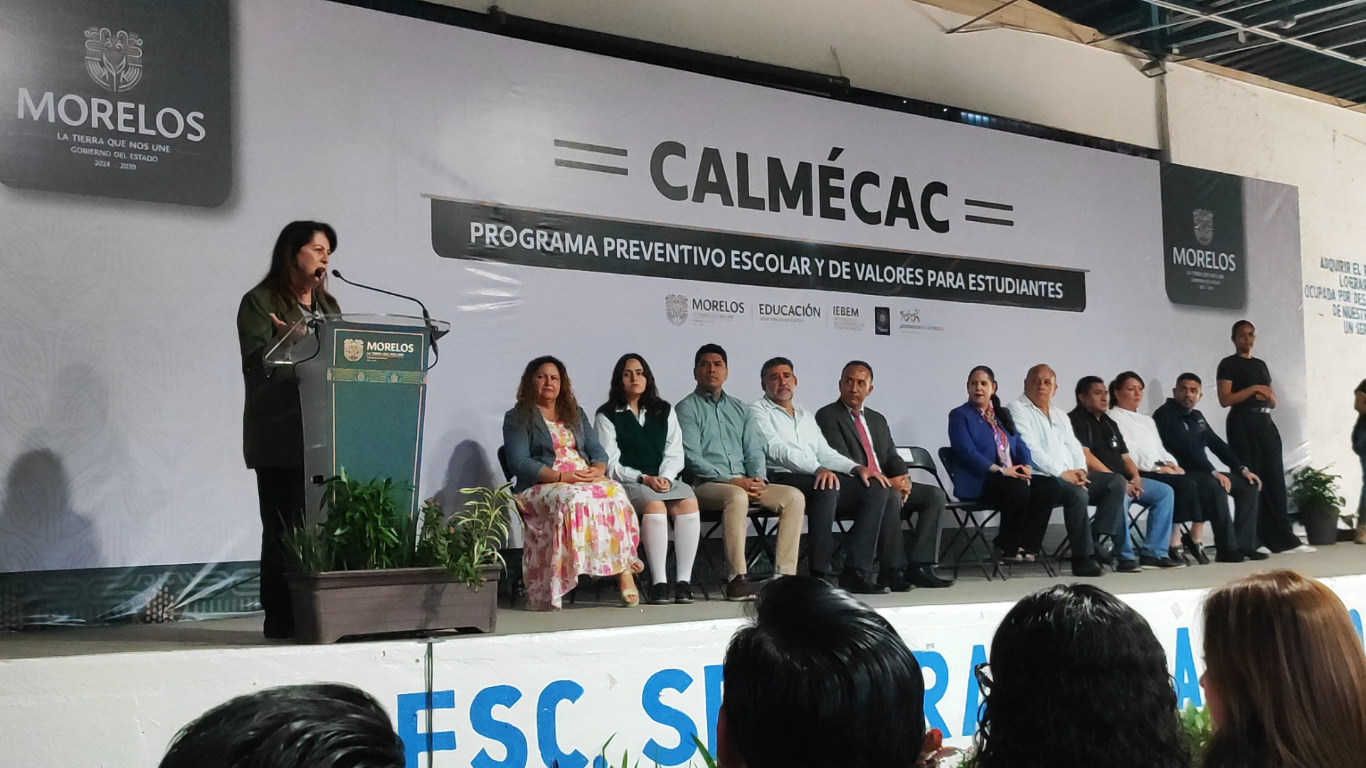 Cuernavaca, Morelos; 28 de octubre de 2025. En las instalaciones de la secundaria general número dos «Francisco González Bocanegra» de la colonia Altavista, autoridades estatales y la fundación Nemi pusieron en marcha el Programa Preventivo Escolar y de Valores para Estudiantes, denominado Calmécac.