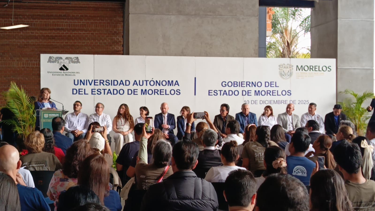 Cuernavaca, Morelos; 10 de diciembre de 2025. La gobernadora Margarita González Saravia anunció que gracias a las gestiones que realizaron, la presidenta de México, Claudia Sheinbaum Pardo, autorizó 270 millones de pesos para la Universidad Autónoma del Estado de Morelos (UAEM) a fin de que se efectúe el pago de aguinaldos.