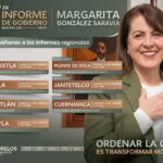 González Saravia ratificó que al ser su gobierno un sexenio de territorio se llevará a cabo un total de siete informes regionales, a fin de dar a conocer, en los 36 municipios, lo concretado durante su primer año de gestión; dichos informes se realizarán en plazas públicas, unidades deportivas, auditorios y, en el caso de Cuautla, en instalaciones del tren escénico.